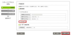 今回は「PPTP」にチェックを入れて、ユーザー認証形式はそのままで。